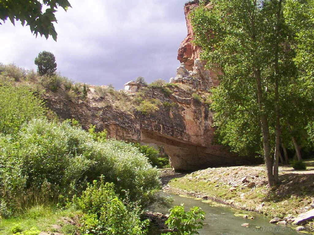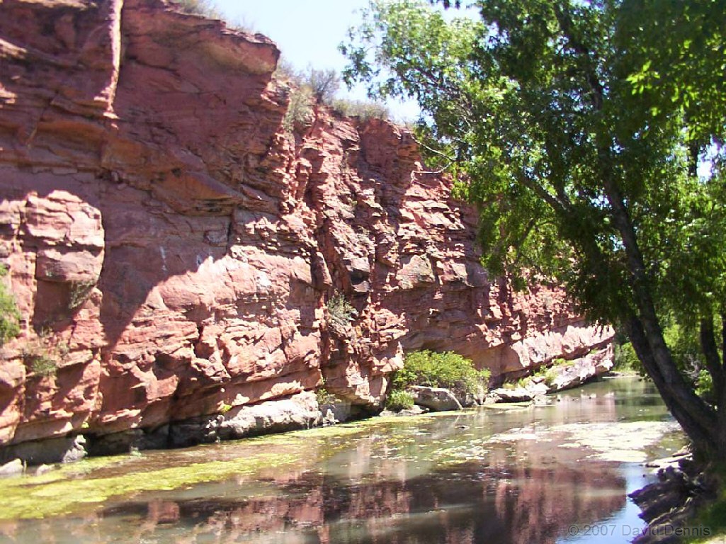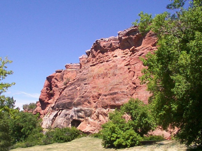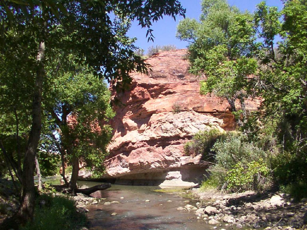 There photographs were all taken in Ayres Natural Bridge Park, Wyoming. The first five were taken on the August 6, 2002, and it was a generally overcast day. The shadows are weaker but the coloring of the rocks seems more distinct. The rest were taken two days later on August 8 in blue skies. I found this park to be a stunning place which is little known.