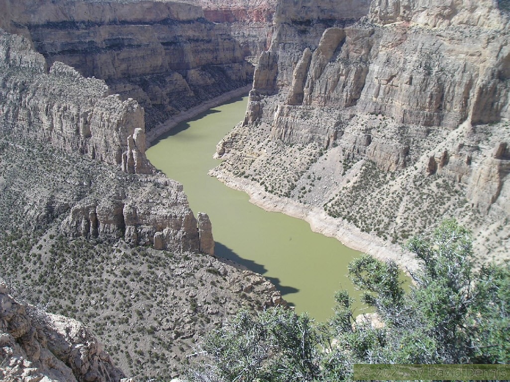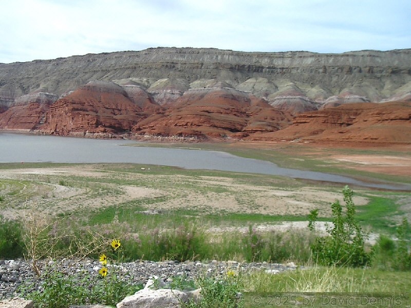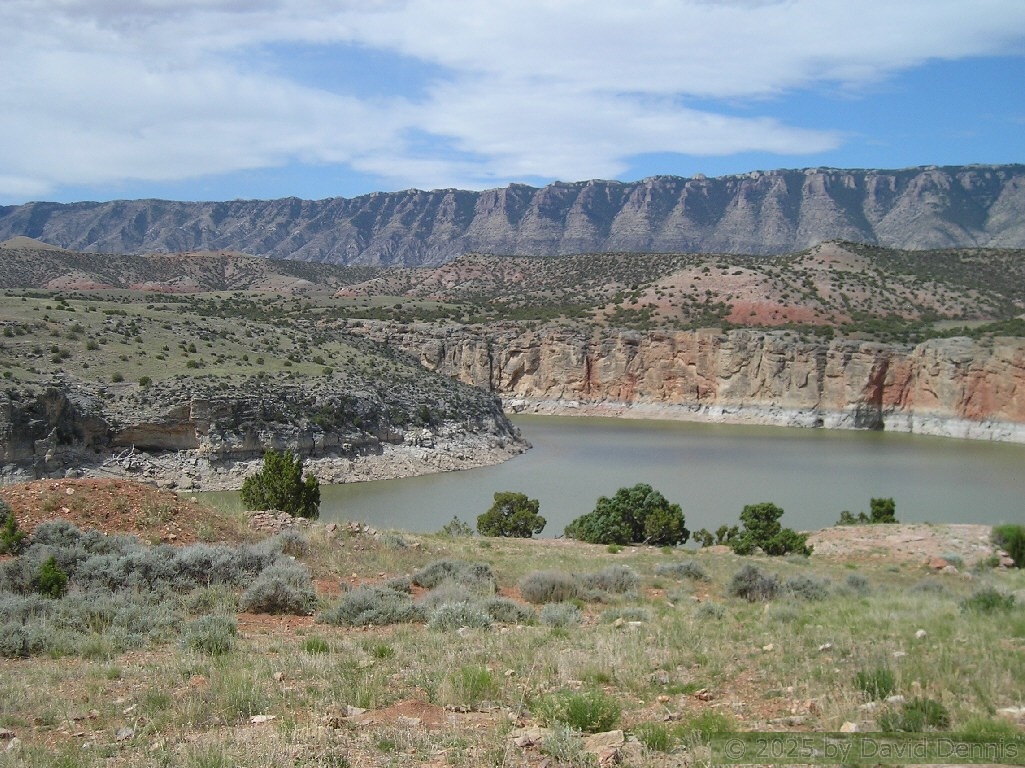 These wallpaper photographs from Bighorn Canyon National Recreation Area were taken in June 2006. We entered the park from the Wyoming side on the south. The water level was low due to drought conditions. The horses in the picture are wild mustangs. Bighorn Lake was formed by the Yellowtail Dam on the Bighorn River.