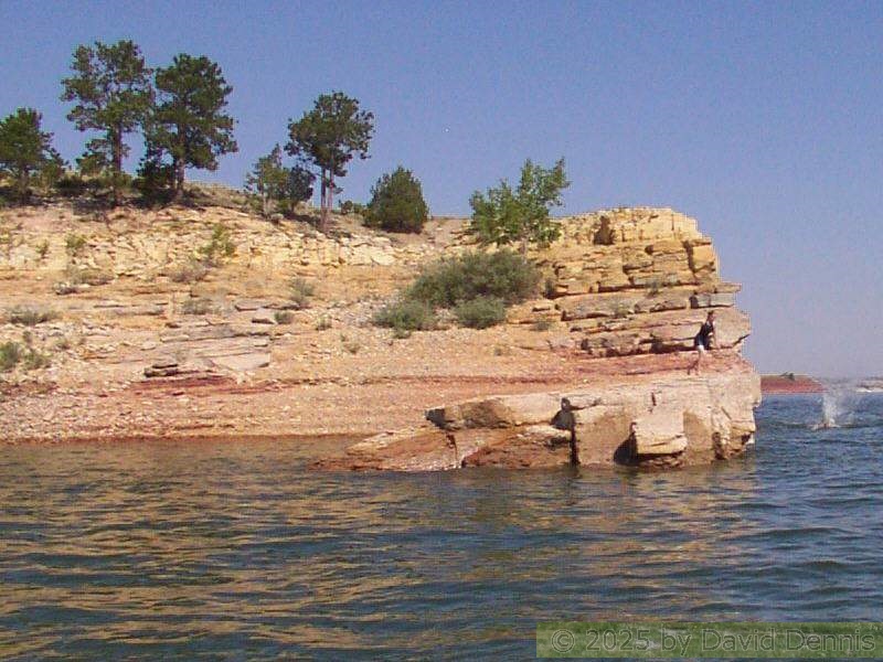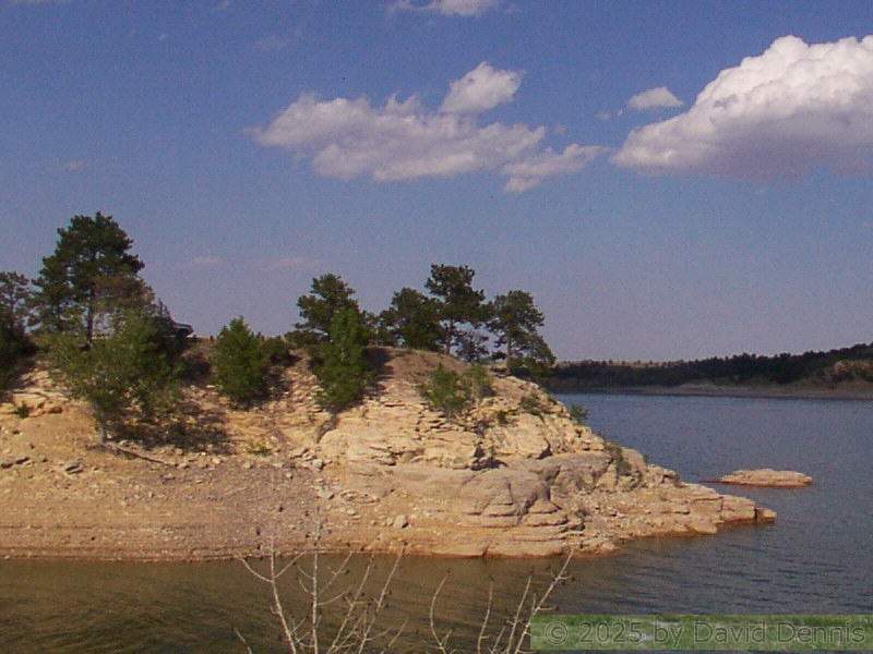 There photographs were all taken in Glendo State Park, Wyoming on August 8, 2002. The water level was low because of a dry spring and summer. Only the first picture here is from Glendo Resevoir. The rest are pictures taken on a trail following the North Platte River below Glendo Dam. The scenery was great but the mosquitoes were hungry.