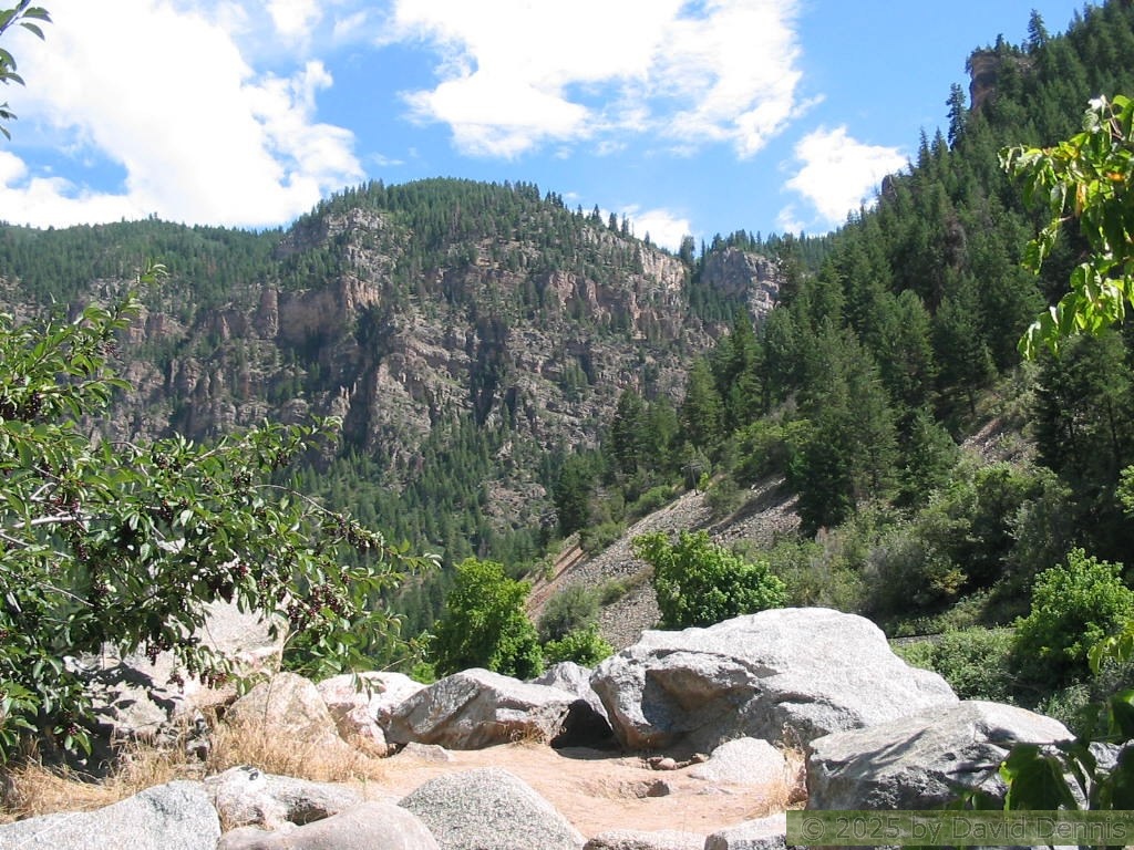 These nature photographs were taken from interstate highway exits along Glenwood Canyon, Colorado. They were taken in July 2005. Glenwood Canyon is a 16 mile section of the Colorado River through which Interstate 70 passes, along with a paved hiking and biking trail.