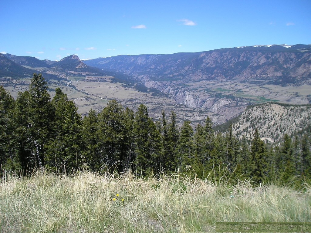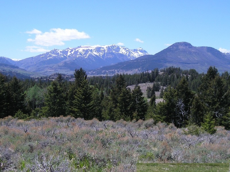 Leading south from the Beartooth Scenice Byway, Wyoming State Highway 296 has been named in honor of Chief Joseph, who led his Nez Perce Indians through this area in their famous flight for freedom. These pictures were taken on August 9, 2003. Unfortunately, the weather was gloomy, but the scenery was still great.