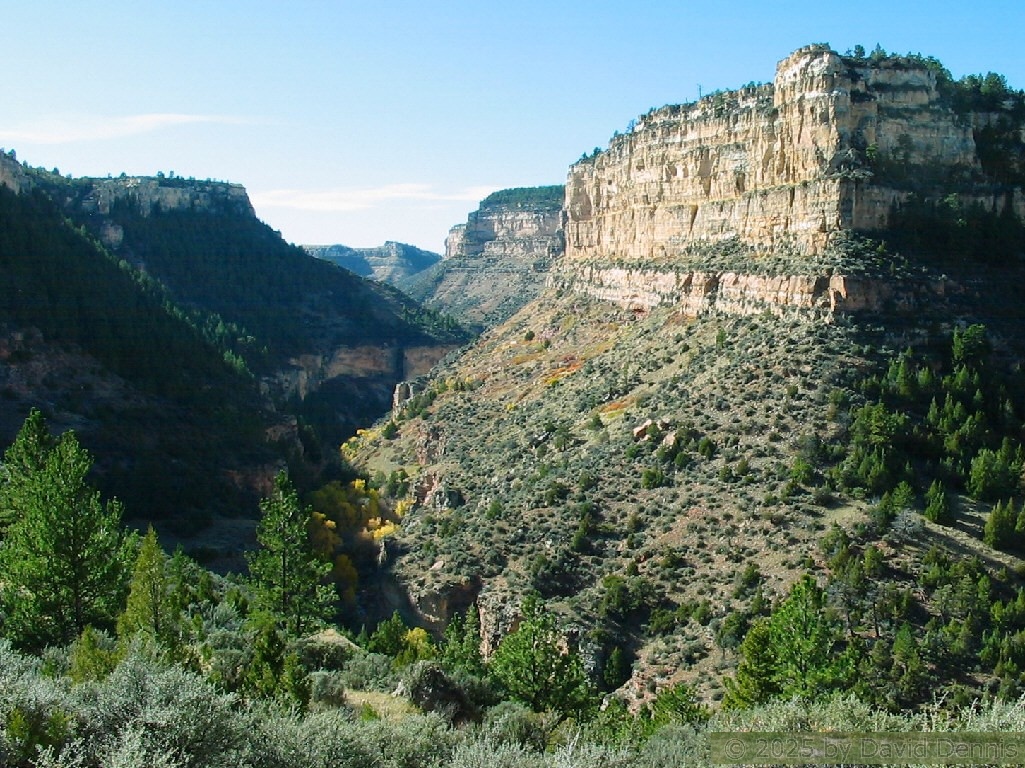 These wallpaper photographs from Outlaw Canyon, Wyoming were taken in October 15, 2005. Butch Cassidy used a cave at the bottom of this canyon as a hideout. These photos were taken at the Outlaw Cave Recreation Area and the hike to the cave. Soon after these photos were taken, a wildfire ravaged the canyon. I have not visited since then, but I hope the beauty of the canyon is not diminished.