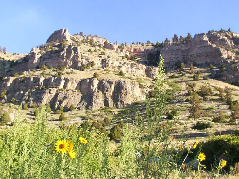 All of these pictures were taken between South Pass City and Lander, Wyoming. Most were taken in Sinks Canyon State Park or Louis Loop Road. All were taken on July 29-31, 2002. The seventeenth picture was taken on the Oregon Trail near South Pass. The River in most of these pictures is the Popo Agie, which disappears into a cave at the sink and reappears hours later at the rise.