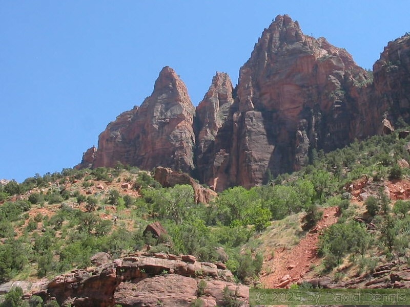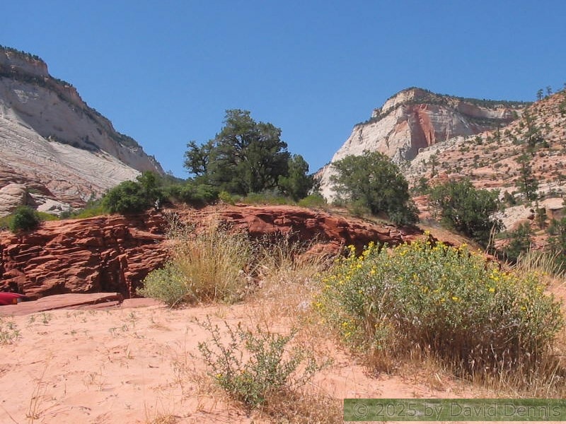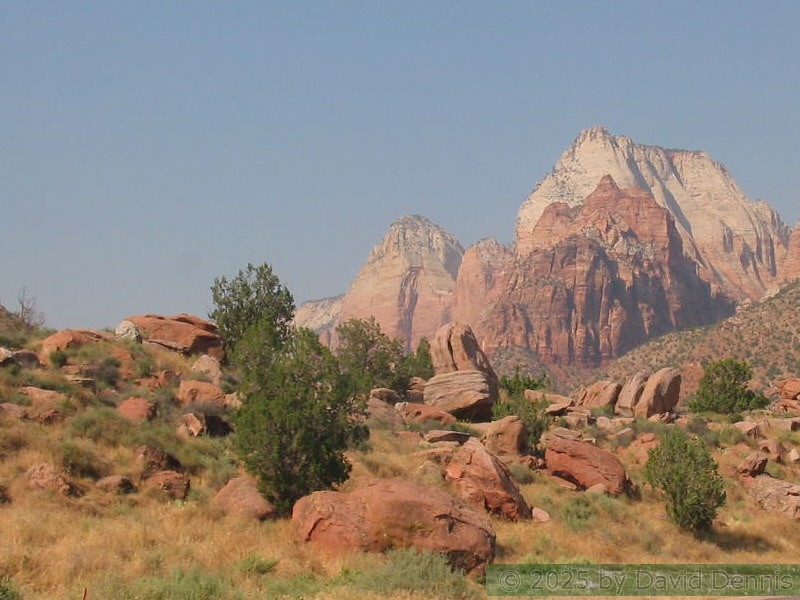 I think Zion National Park is one of the most beautiful places on earth. I visited there on July 1-2, 2005. The park is divided by a mile long tunnel. These first pics were taken on the eastern side. The rocks there are colorful and strange, but truly amazing.