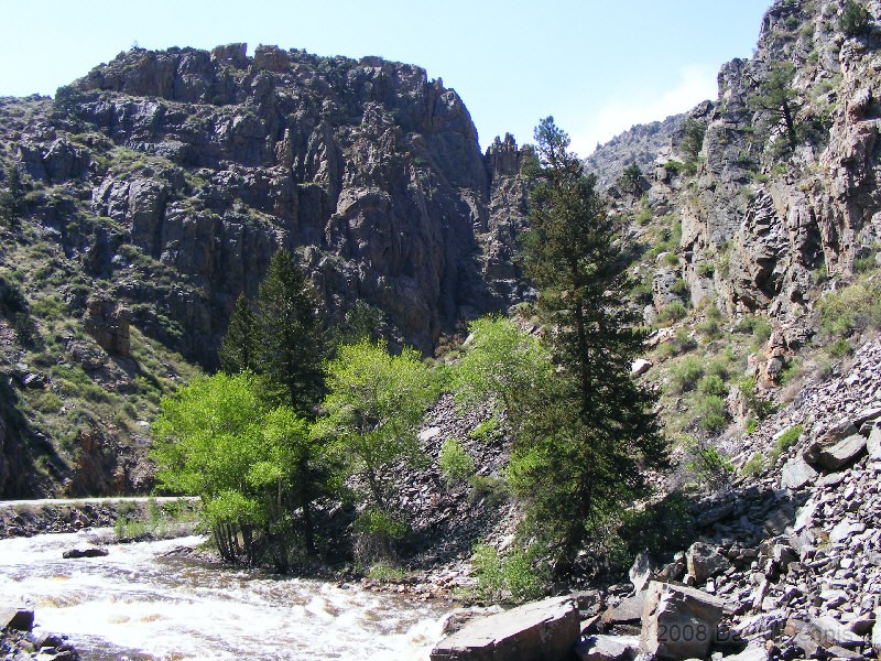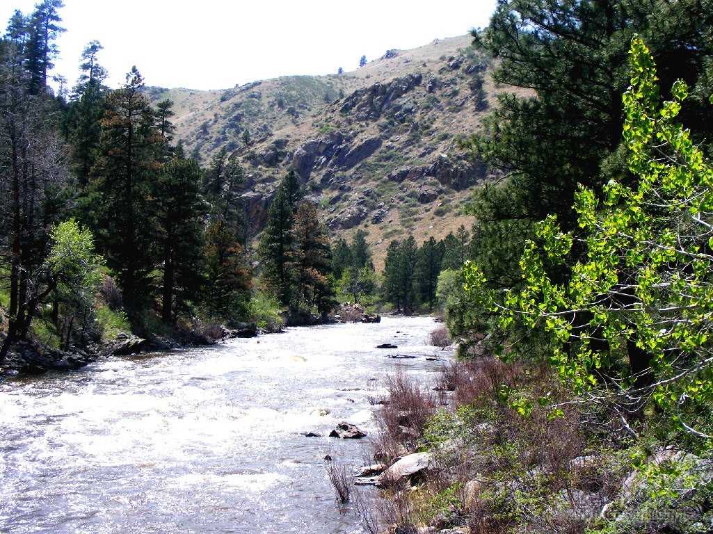 These nature photographs from Cache La Poudre Scenice Byway were taken on May 21, 008. It was a partly cloudy day and somewhat hazy day. I only made it part of the way through the canyon before I met up with rain storms and had to abandon the trip.