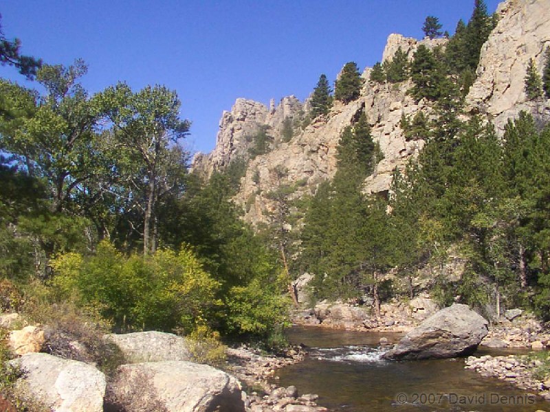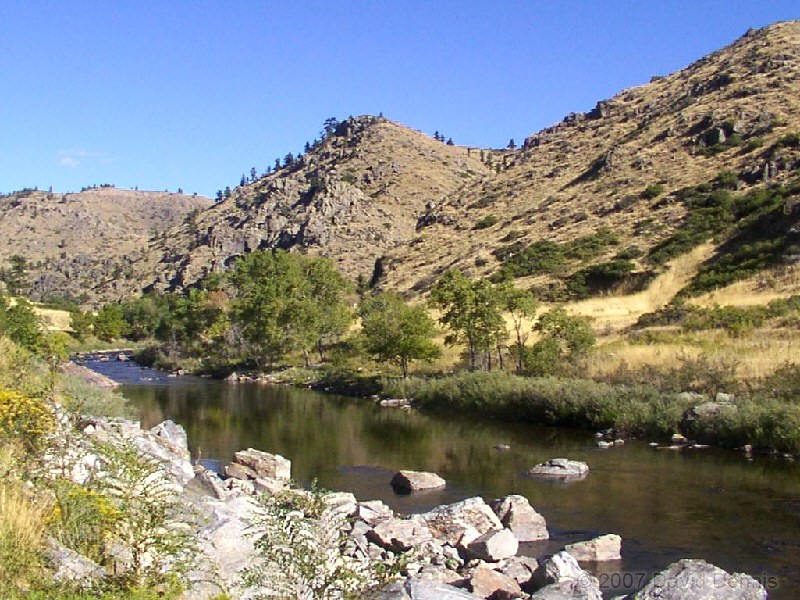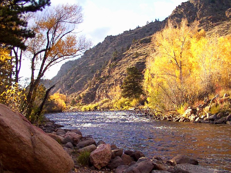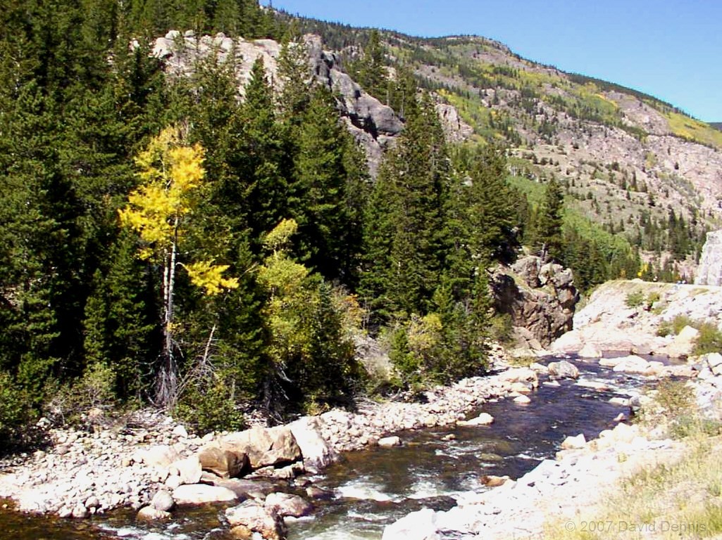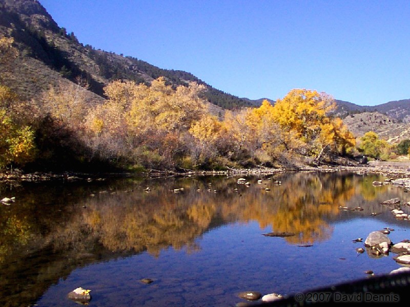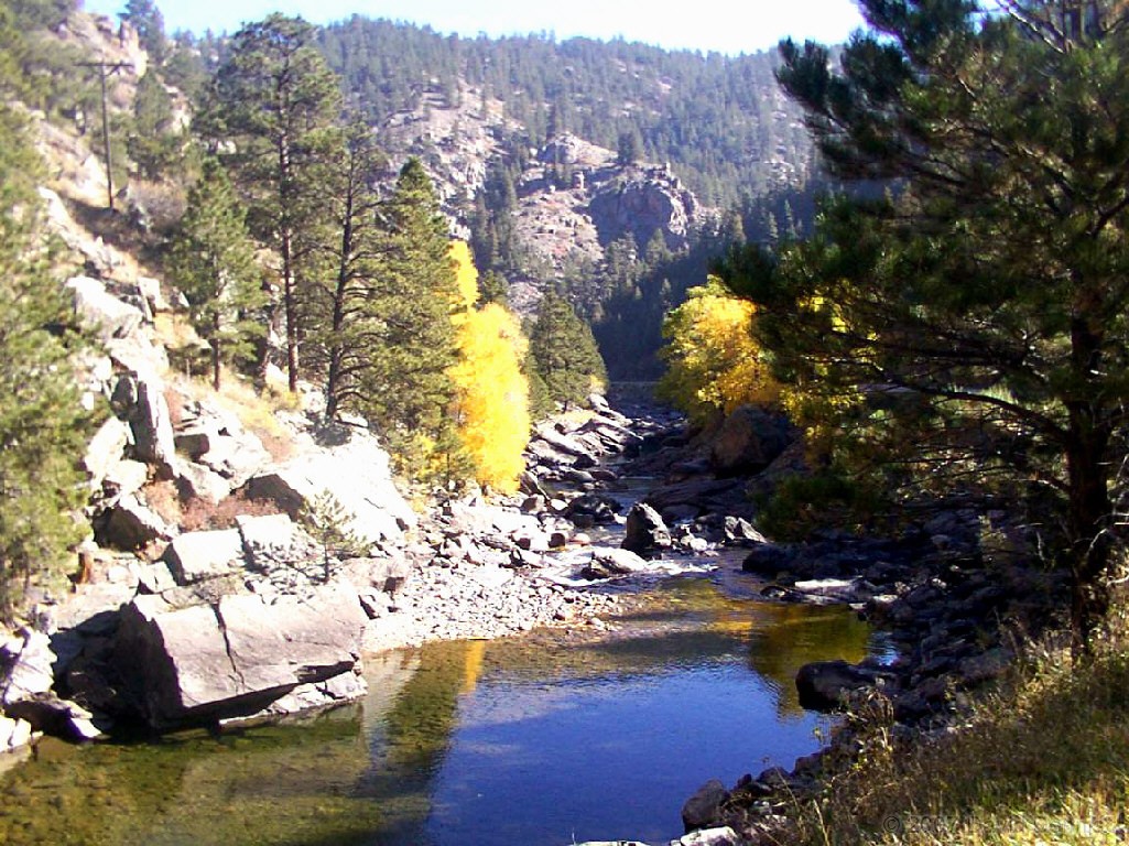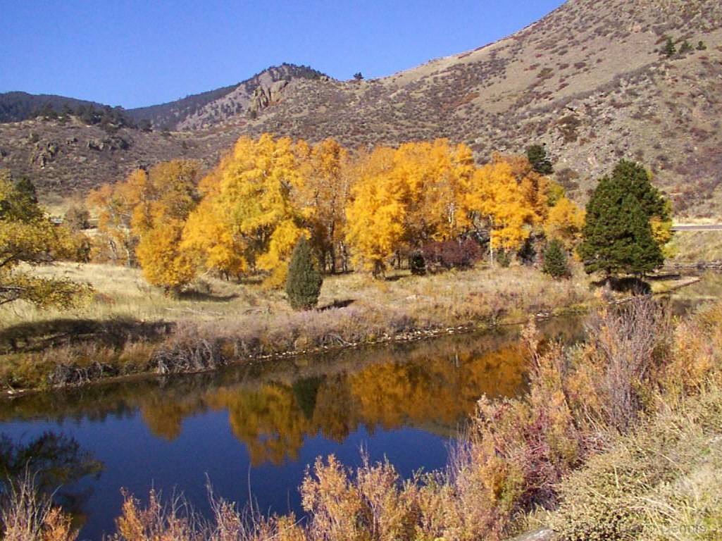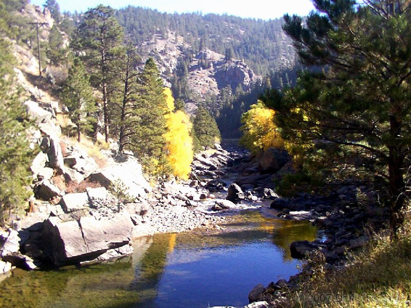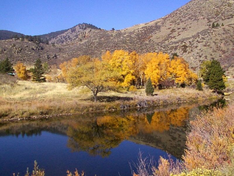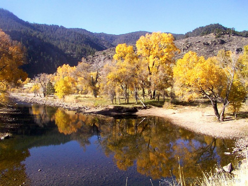 The Cache La Poudre River was named by trappers after a cache of gunpowder that had been stored there. It has been designated as a National Wild and Scenic River by the National Park Service. This first visit along the scenic byway took place on October 19, 2002. A dry spring and summer had left the river level significantly lower than usual, and allowed for some wonderful reflections. It was an excellent time to capture the fall colors.