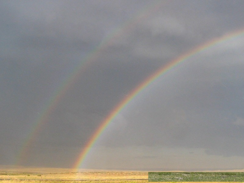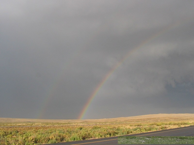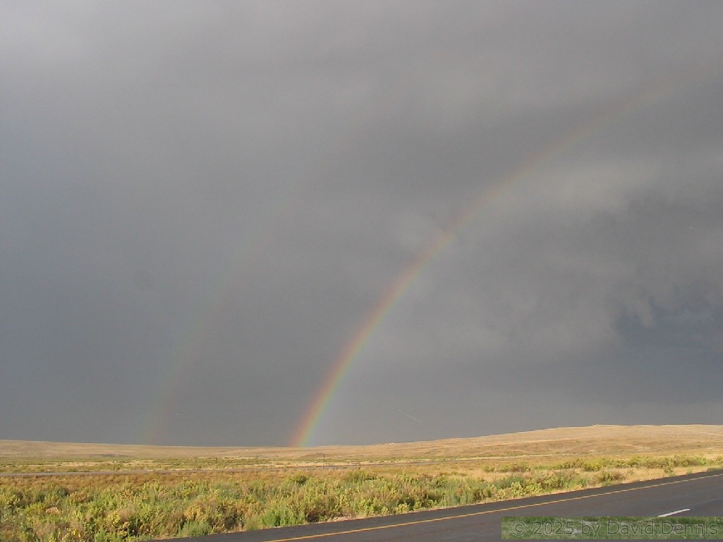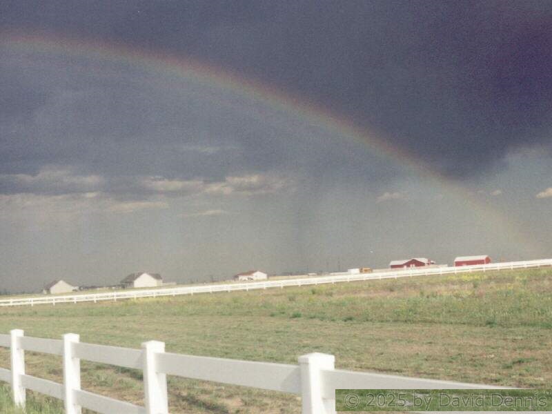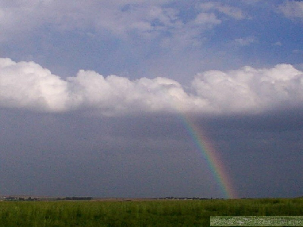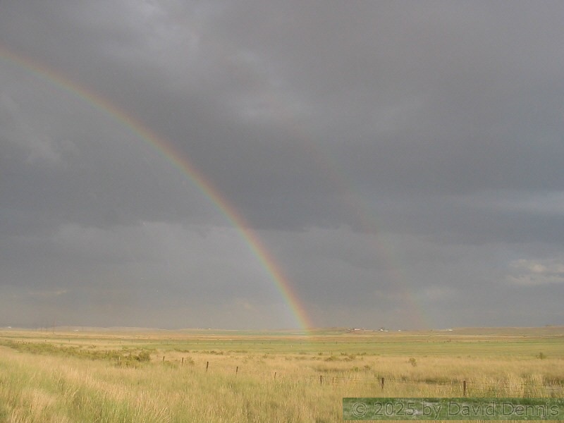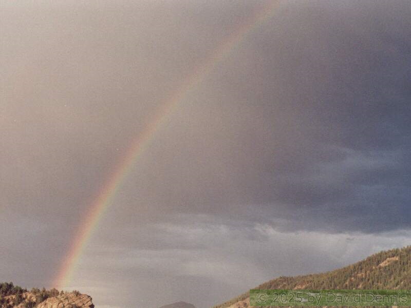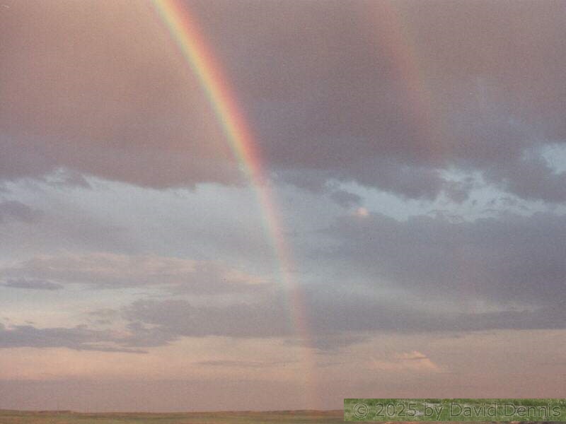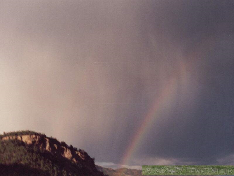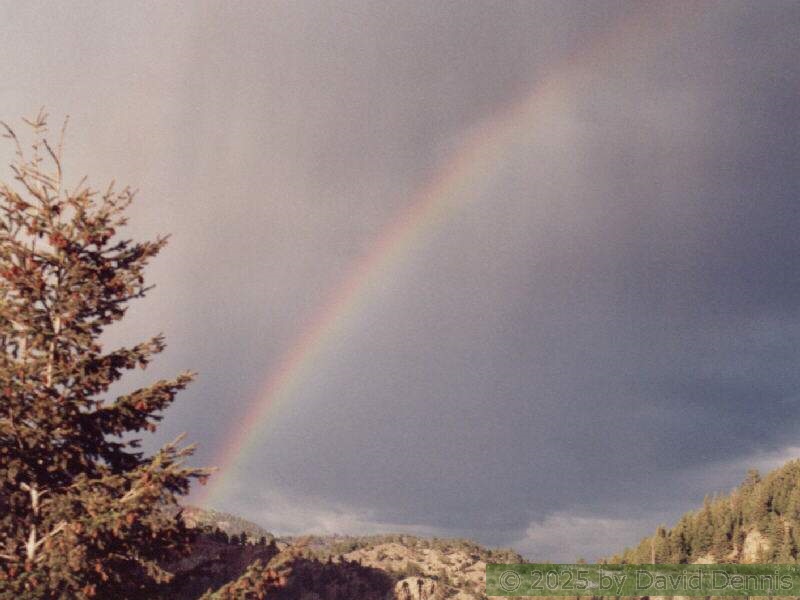 The first four rainbow photographs were taken in April, 2001 just off I-70 between Denver and Idaho Springs, Colorado. The next two rainbow pictures were taken on the plains in Eastern Colorado in May, 2001. The following three were taken near my home in Cheyenne, Wyoming. The last two photos were taken at the bottom of waterfalls in Yellowstone National Park.