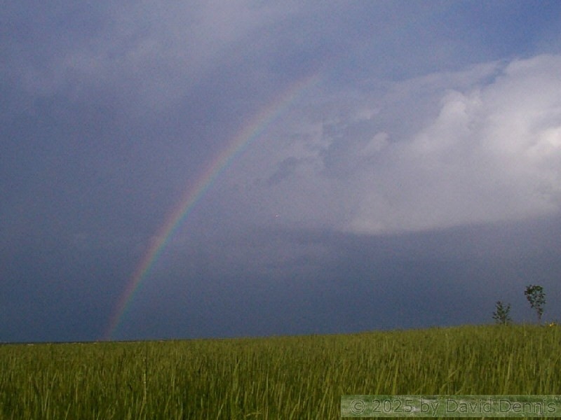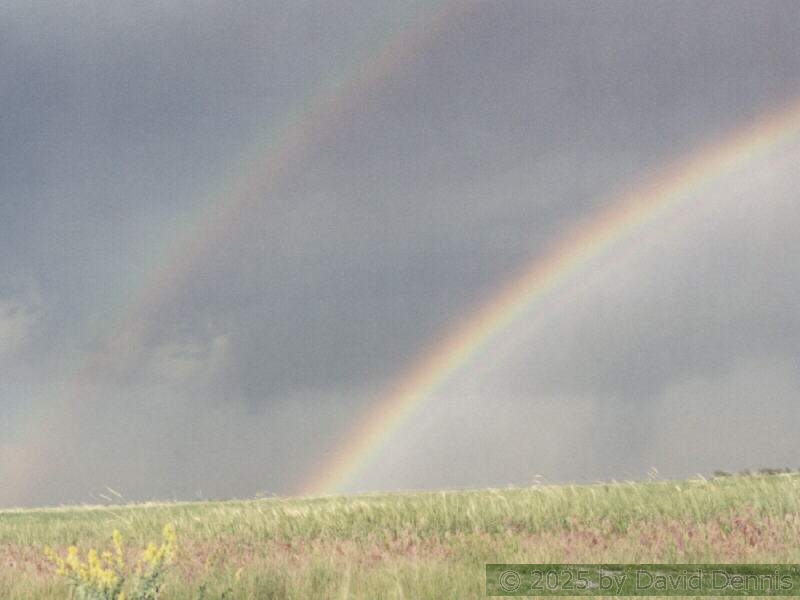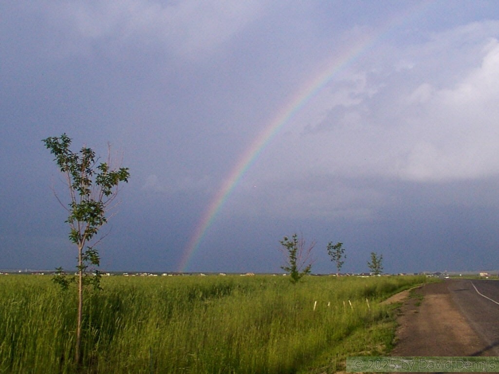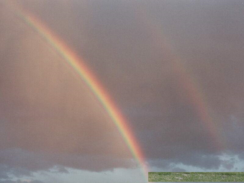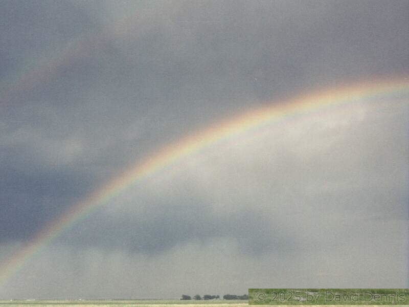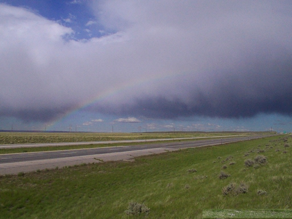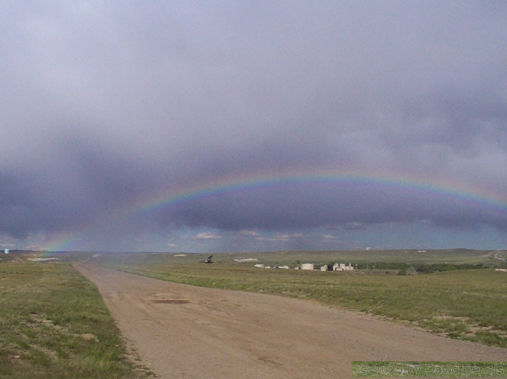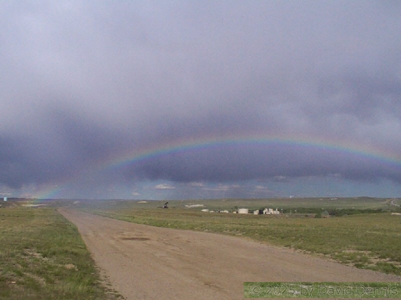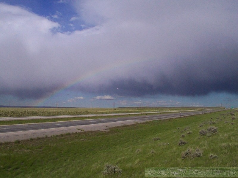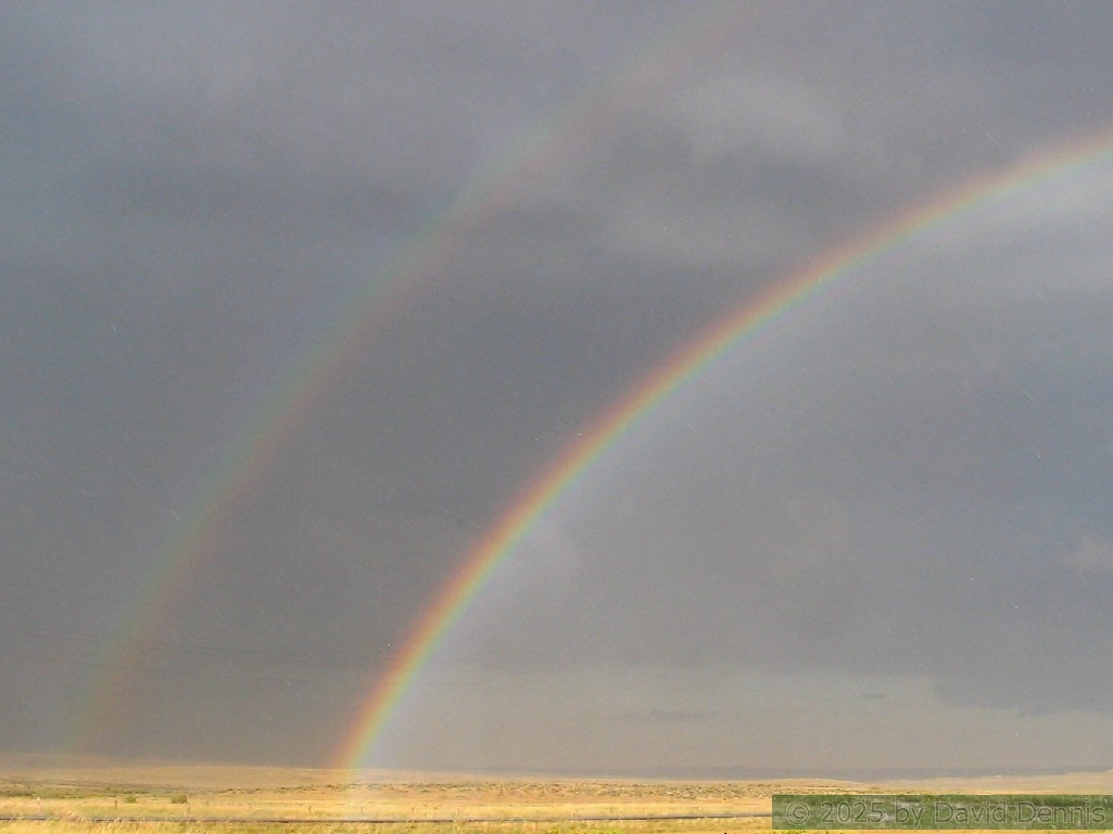 The first four rainbow photographs were taken in April, 2001 just off I-70 between Denver and Idaho Springs, Colorado. The next two rainbow pictures were taken on the plains in Eastern Colorado in May, 2001. The following three were taken near my home in Cheyenne, Wyoming. The last two photos were taken at the bottom of waterfalls in Yellowstone National Park.