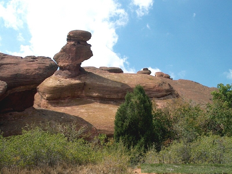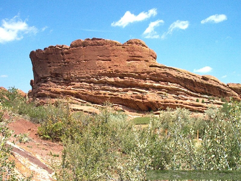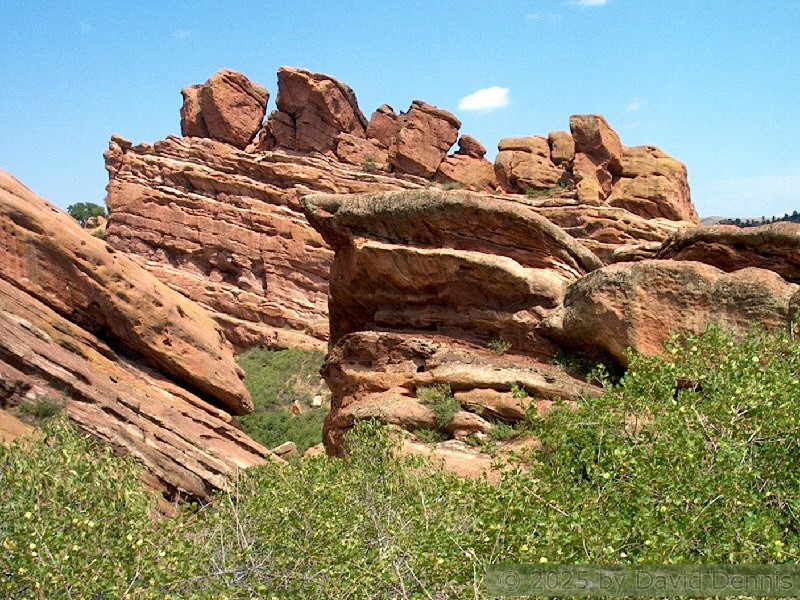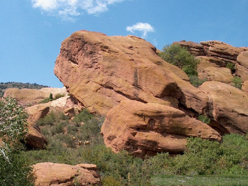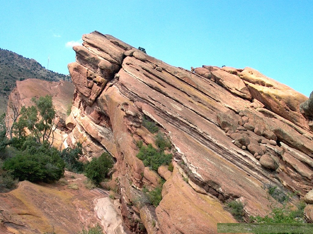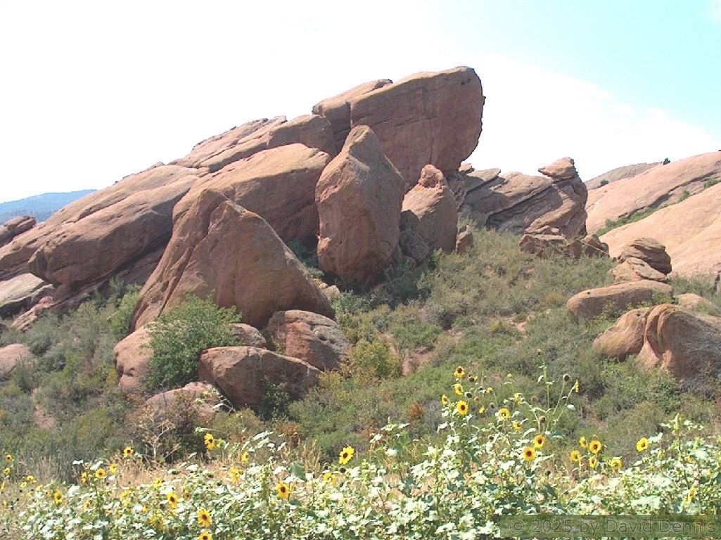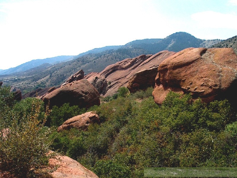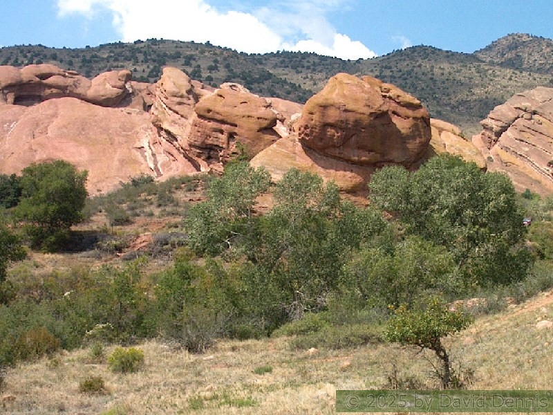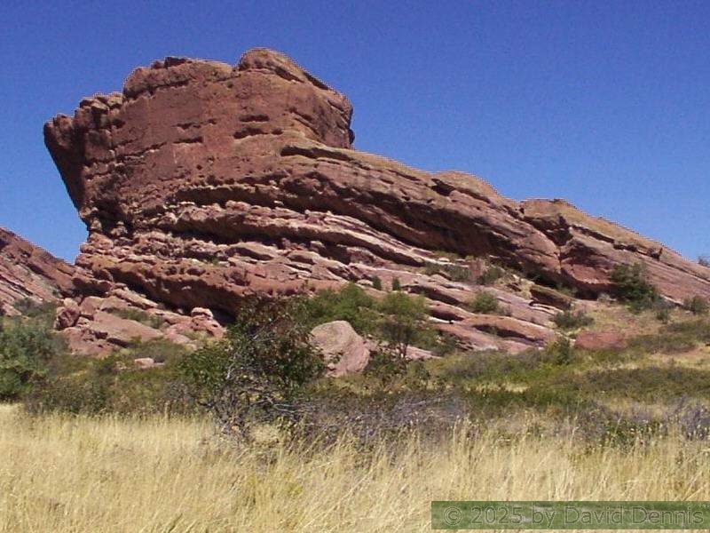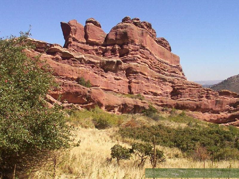 Red Rocks is a mountain park just west of Denver that is administered by the Denver Parks system. It can be found in the foothills, near Morrison, Colorado. Red Rocks is famous for the natural Amphitheather, where concerts are held regularly. But it is also a natural wonder of red sandstone rock formations. These pictures were taken on September 22, 2003.