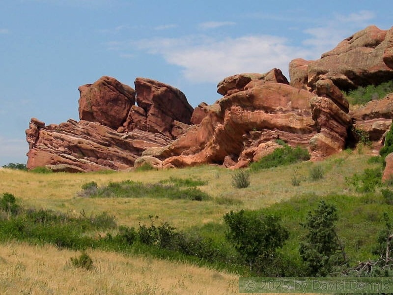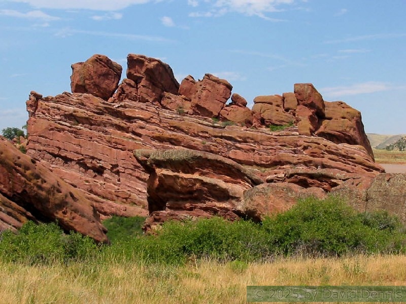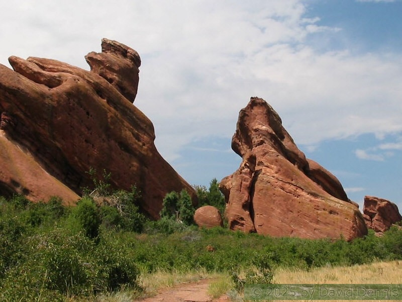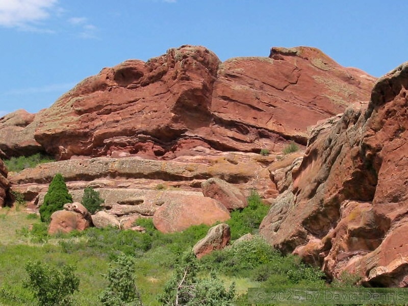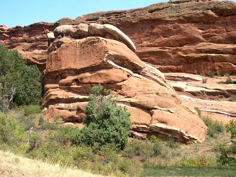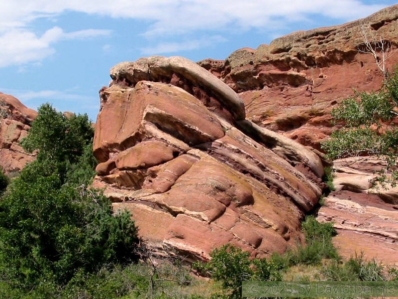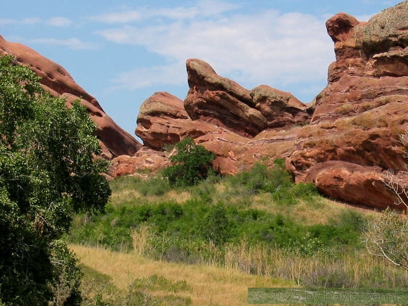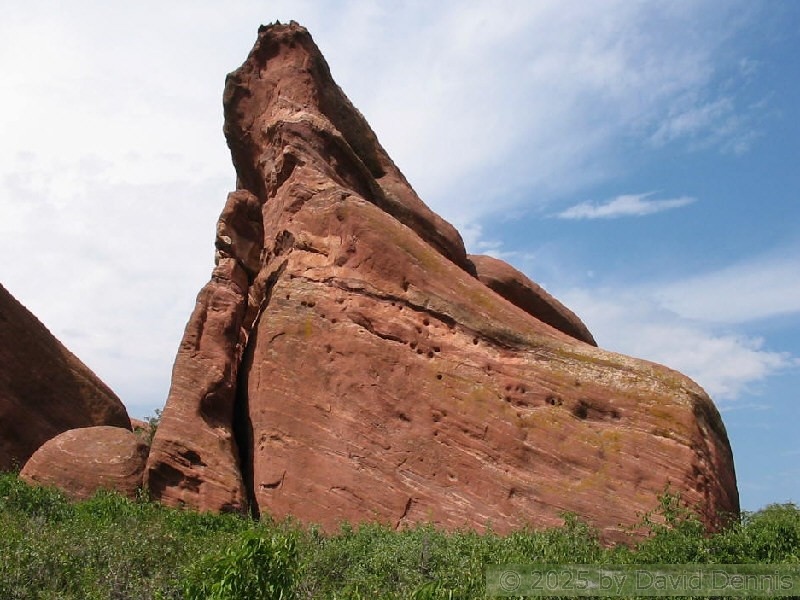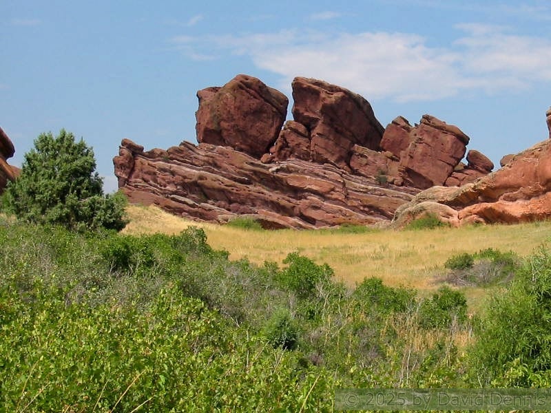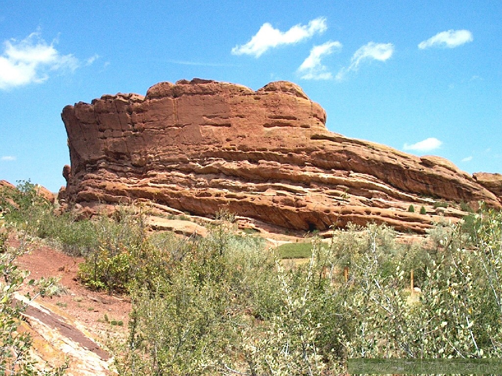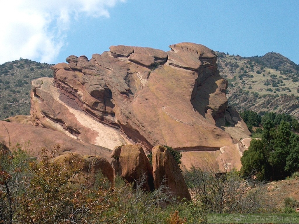 Red Rocks is a mountain park just west of Denver that is administered by the Denver Parks system. It can be found in the foothills, near Morrison, Colorado. Red Rocks is famous for the natural Amphitheather, where concerts are held regularly. But it is also a natural wonder of red sandstone rock formations. These pictures were taken on September 22, 2003.