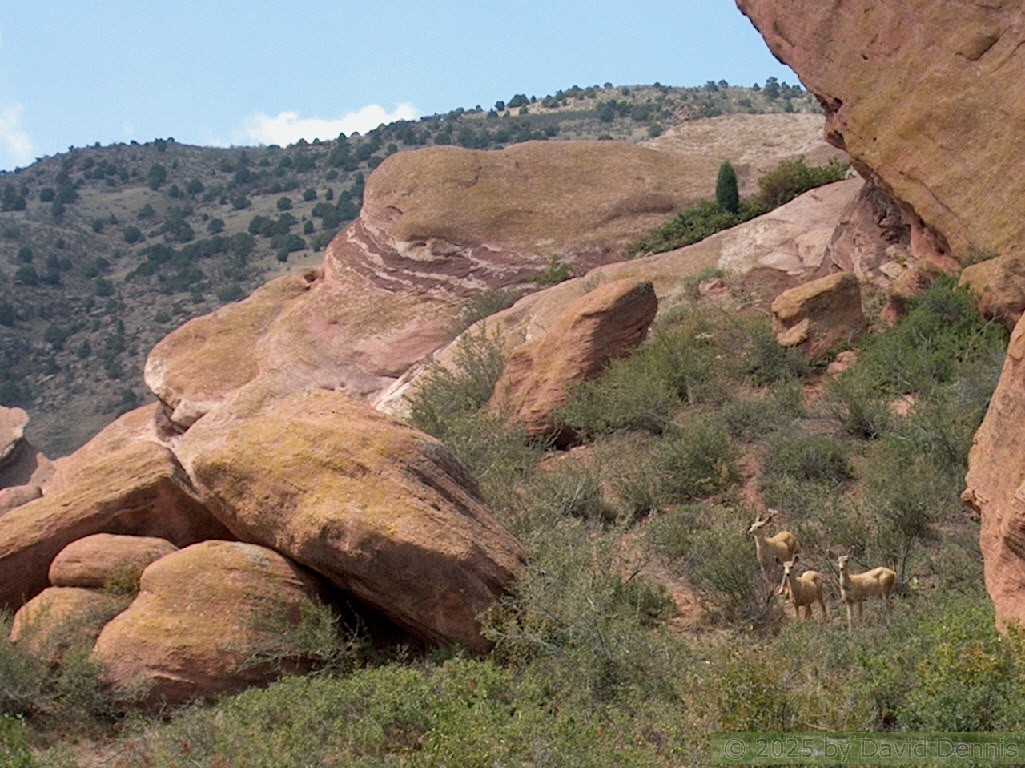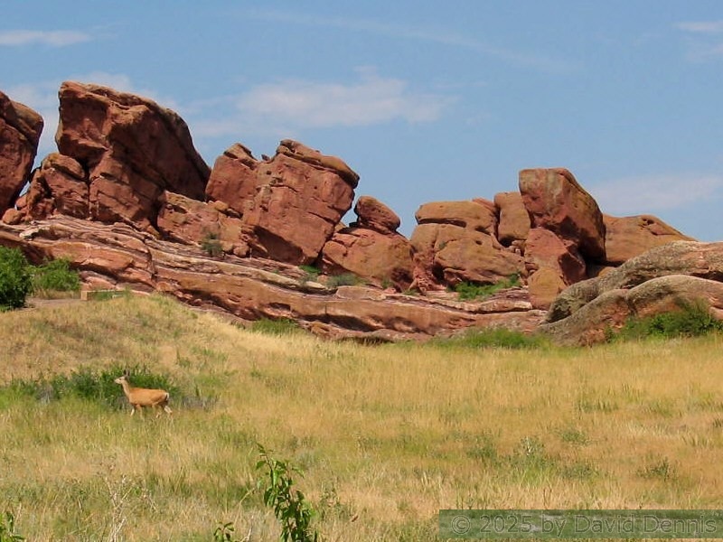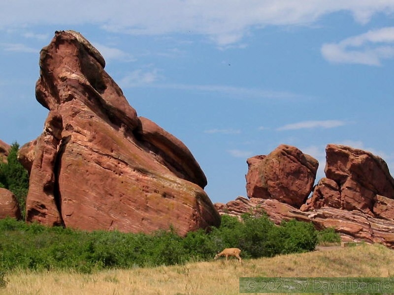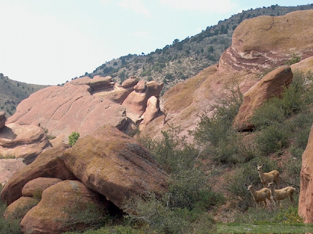 These pictures were taken on August 9, 2005 at about midday. It was a sunny day on the west and a cloudy day on the east. I hiked the loop trail through the center of the park. I was fortunate enough to get some pictures of deer in front of the rocks on the back half of the loop.